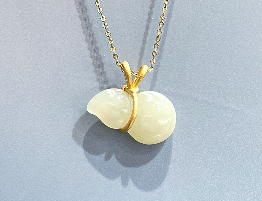 和田玉925银镶吊坠白玉银杏叶925银镶吊坠