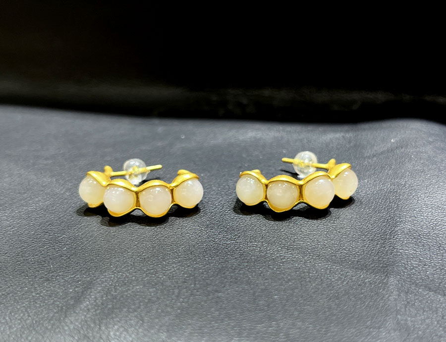 和田玉银镶耳钉和田玉碧玉圆球花瓣925银镶耳坠