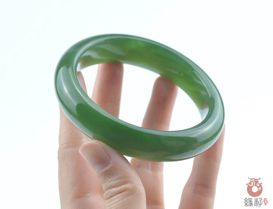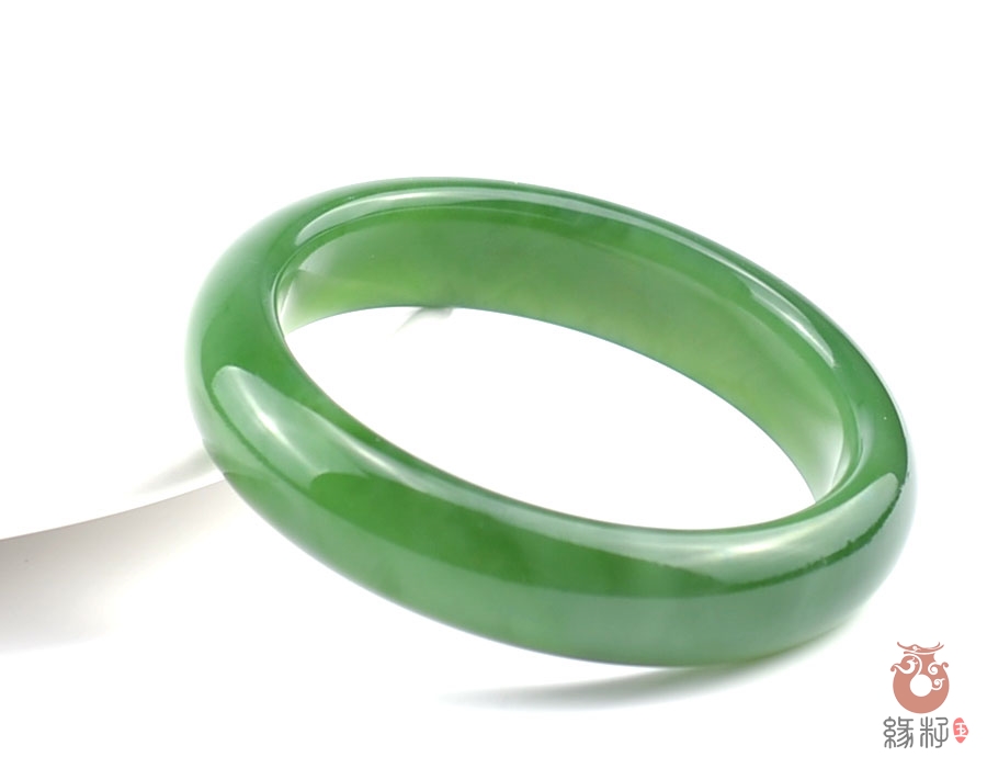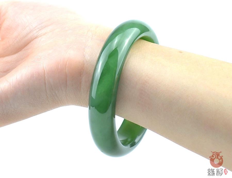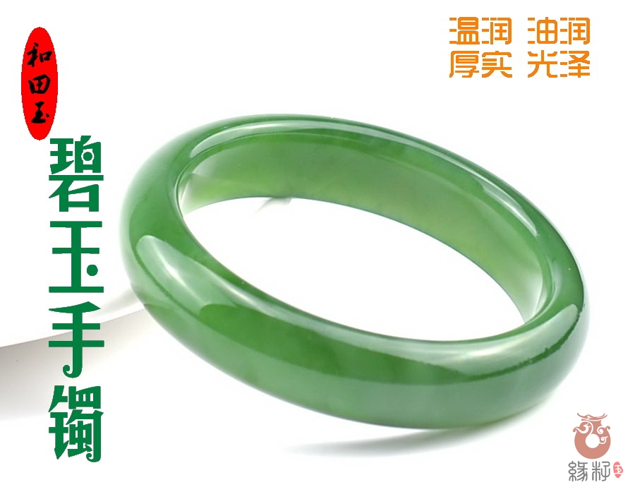 作品特色: 流行扁条设计,时尚潮流新款,宽窄适中,贴身舒适,高雅大方,油润光泽,靓丽美观;玉质温润细腻,油糯老熟,结构及色泽均匀且致密无杂质,属高端和田玉料/出自老坑,色泽碧绿洁净,高雅靓丽,稀有菠菜绿碧玉臻品;精美包装礼盒及手提袋。