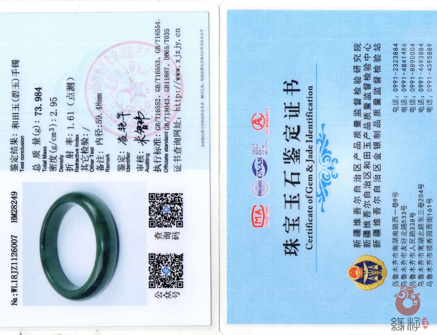 中国新疆和田玉网出售的商品均出具以下资质的国家权威质检部门质检证书:
