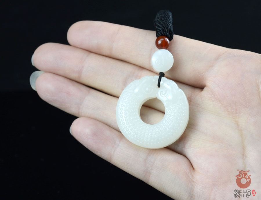 作品简述:缘籽和田玉双龙护主平安扣玉佩挂件,天然优质和田玉羊脂白玉,苏工大师设计雕刻,质地油润,光泽细腻,雕工精细,寓意平平安安,国检证书,七天无理由退货。