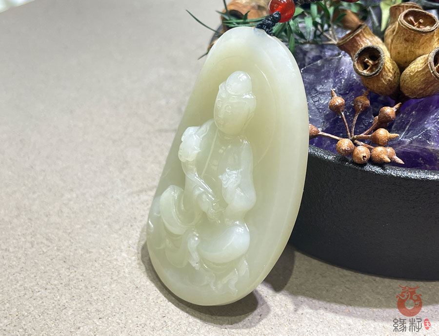 和田玉本身被视为“蓄养元气”的灵物,结合观音的神圣性,形成双重护身屏障,阻挡负面能量侵扰。