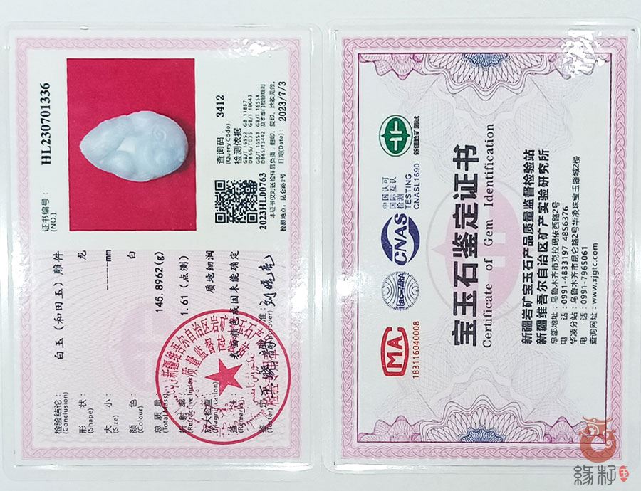 (附:新疆岩矿宝玉石产品质量监督检验站;国家和田玉产品质量监督检验中心样例)