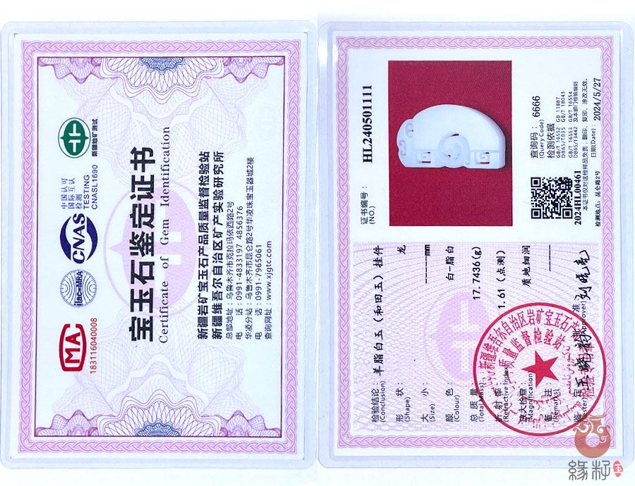 中国新疆和田玉网出售的商品均出具以下资质的国家权威质检部门质检证书: