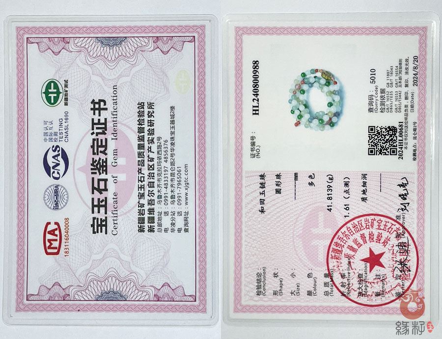 中国新疆和田玉网出售的商品均出具以下资质的国家权威质检部门质检证书: