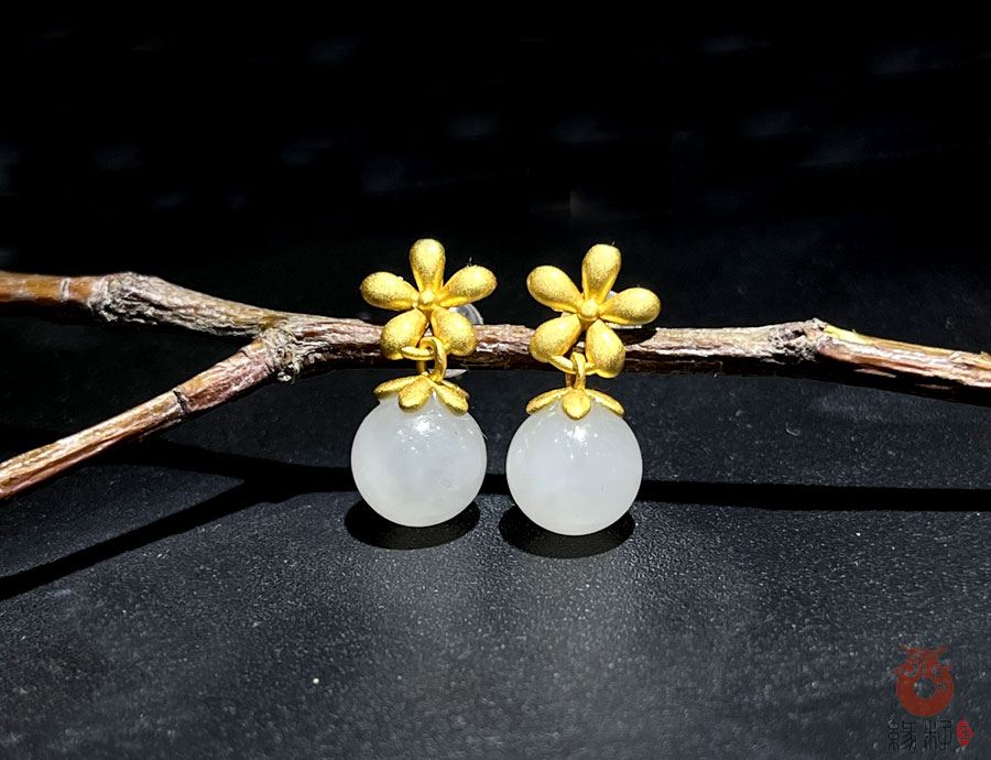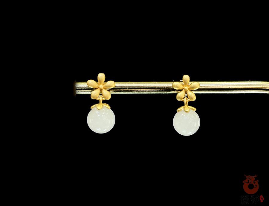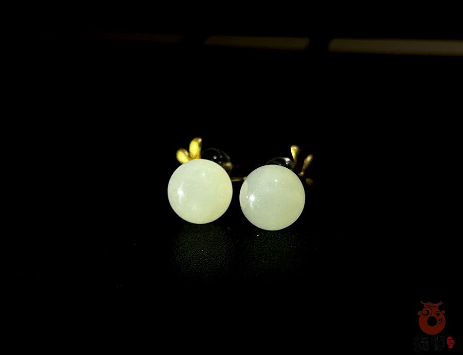 作品简述:和田玉银镶耳钉和田玉白玉圆球花瓣925银镶耳坠