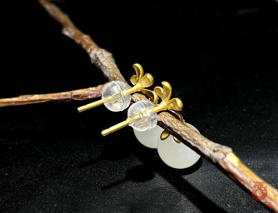 证号:925Y-白玉圆球花瓣耳钉-ZH