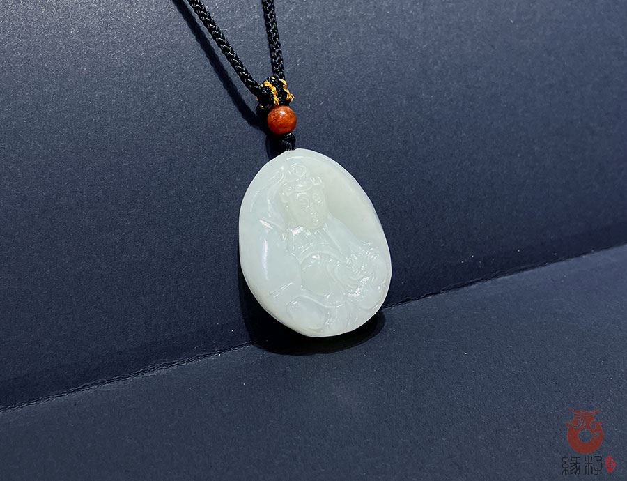 和田玉温润养人,观音本身具消病除障法力,共同强化祛病延寿的象征意义。