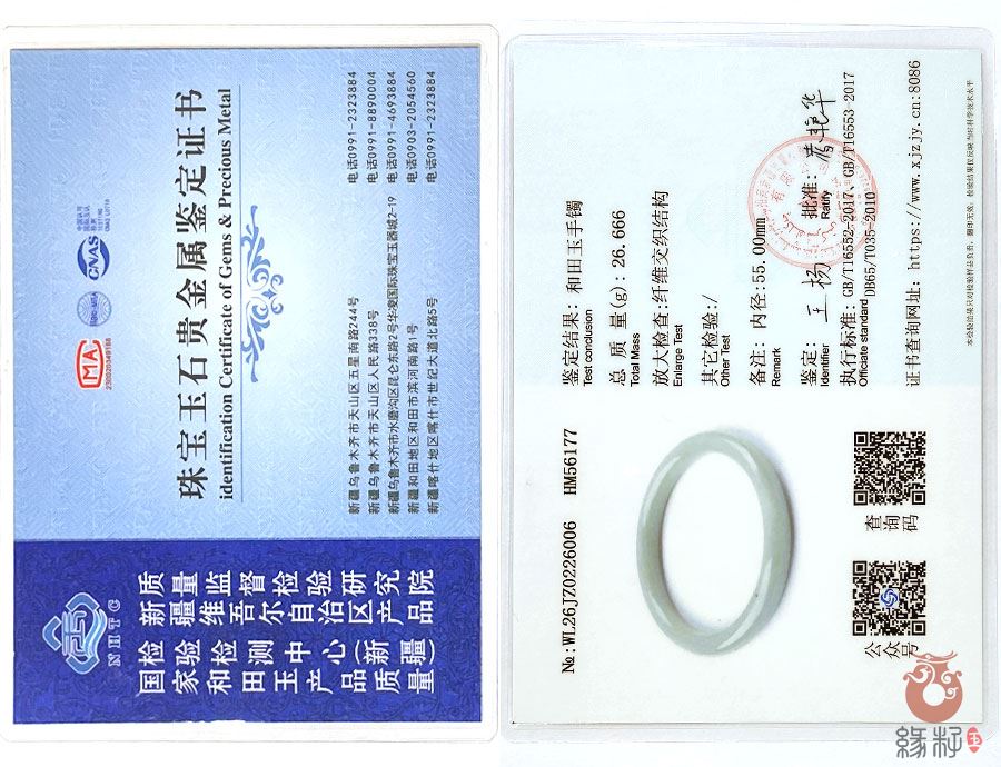 (附:新疆岩矿宝玉石产品质量监督检验站;国家和田玉产品质量监督检验中心样例)