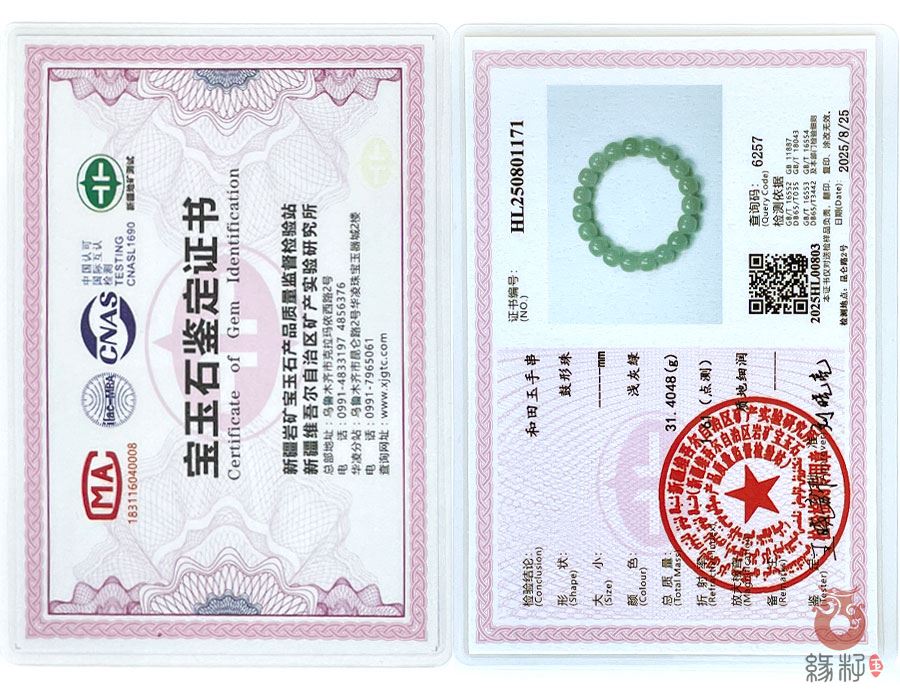 (附:新疆岩矿宝玉石产品质量监督检验站国家和田玉产品质量监督检验中心样例)