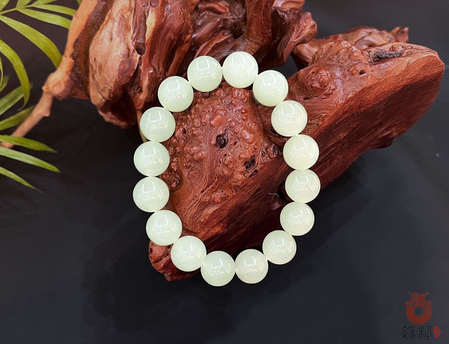 作品简述:和田玉手串选用纯天然上等和田玉原料,颗颗精选,晶莹圆润饱满,和田玉11mm圆珠手串质地纯净,油润光泽细腻