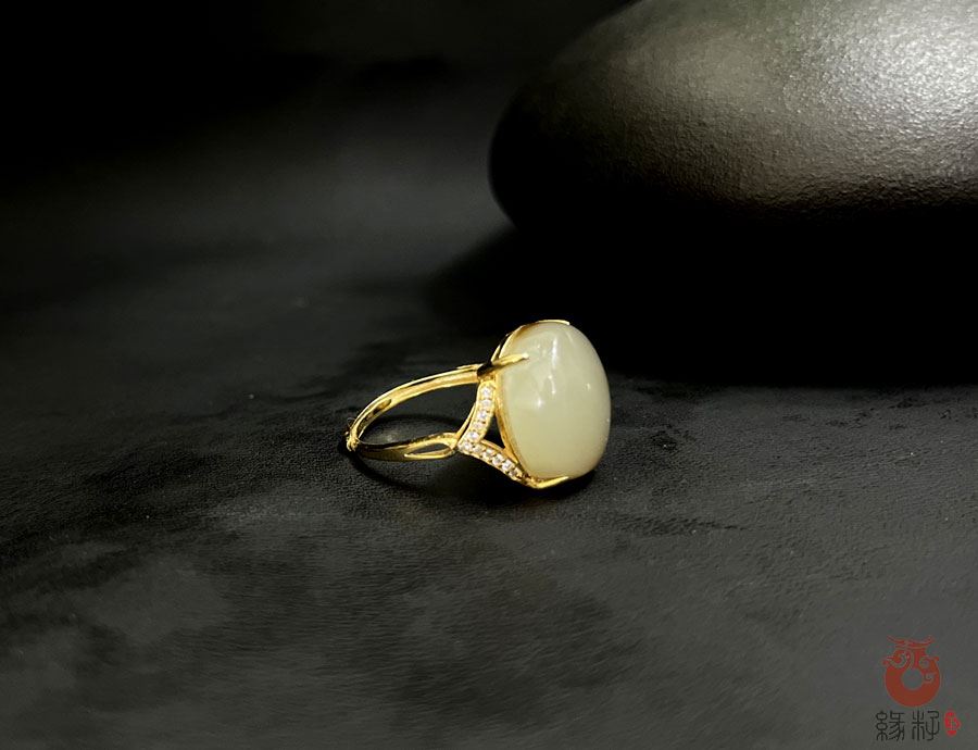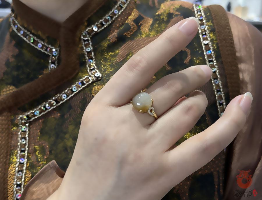 作品简述:缘籽和田玉925银镶戒指,天然优质和田玉糖白玉,苏工大师设计雕刻,质地油润,光泽细腻,雕工精细,寓意守护平安,国检证书,七天无理由退货。