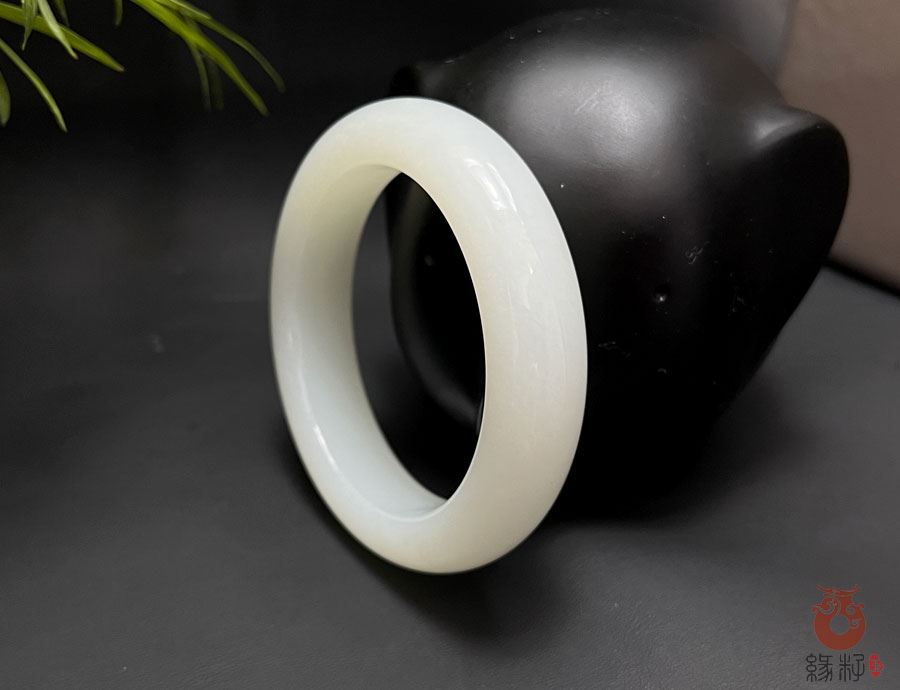 作品简述:缘籽和田玉羊脂玉扁条时尚款手镯,纯天然上等和田玉羊脂玉,苏工大师制作,缘籽玉手镯质地油润光泽细腻,设计完美做工精细,国检证书