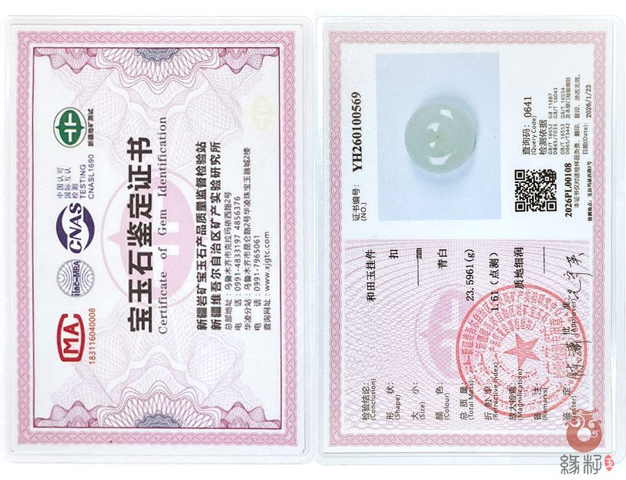 (附:新疆岩矿宝玉石产品质量监督检验站国家和田玉产品质量监督检验中心样例)