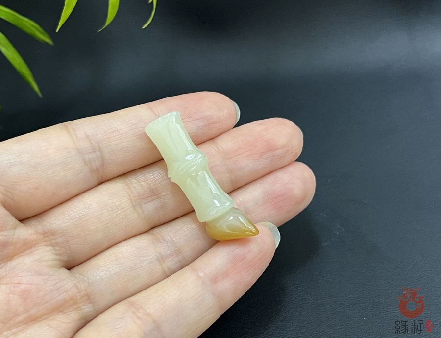 作品简述:缘籽和田玉竹节毛笔挂件,天然优质和田玉糖白玉,苏工大师设计雕刻,质地油润,光泽细腻,雕工精细,寓意金榜题名,国检证书,七天无理由退货。
