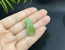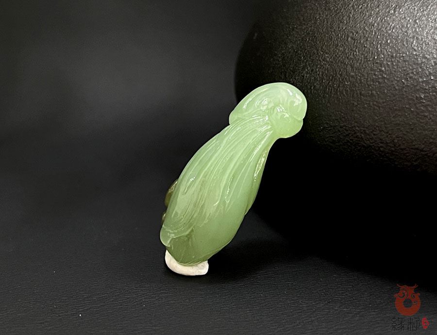 作品特色: 玉质温润细腻,油糯老熟,结构及色泽均匀且致密无杂质,属高端和田玉料;知名玉雕师作品/简洁清爽,自然生动完美;手编挂链/精美包装礼盒及手提袋。