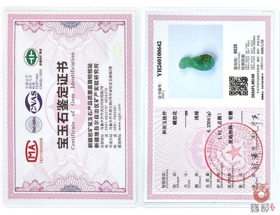 (附:新疆岩矿宝玉石产品质量监督检验站国家和田玉产品质量监督检验中心样例)