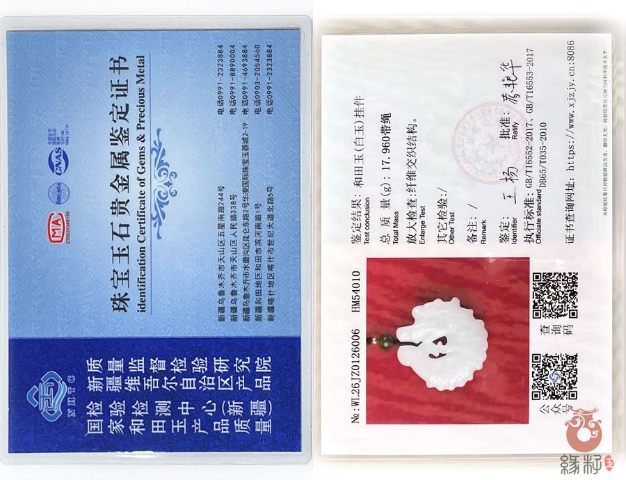 (附:新疆岩矿宝玉石产品质量监督检验站国家和田玉产品质量监督检验中心样例)