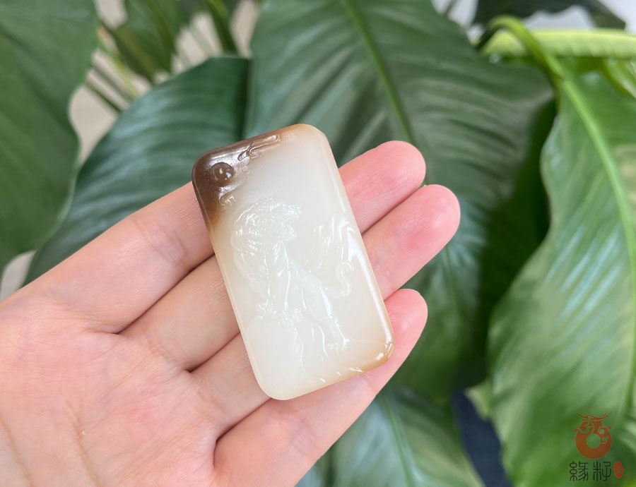 作品简述:缘籽和田玉生肖虎玉牌挂件,天然优质和田玉糖羊脂玉,苏工大师设计雕刻,质地油润,光泽细腻,雕工精细,寓意‌吉祥守护,国检证书,七天无理由退货。