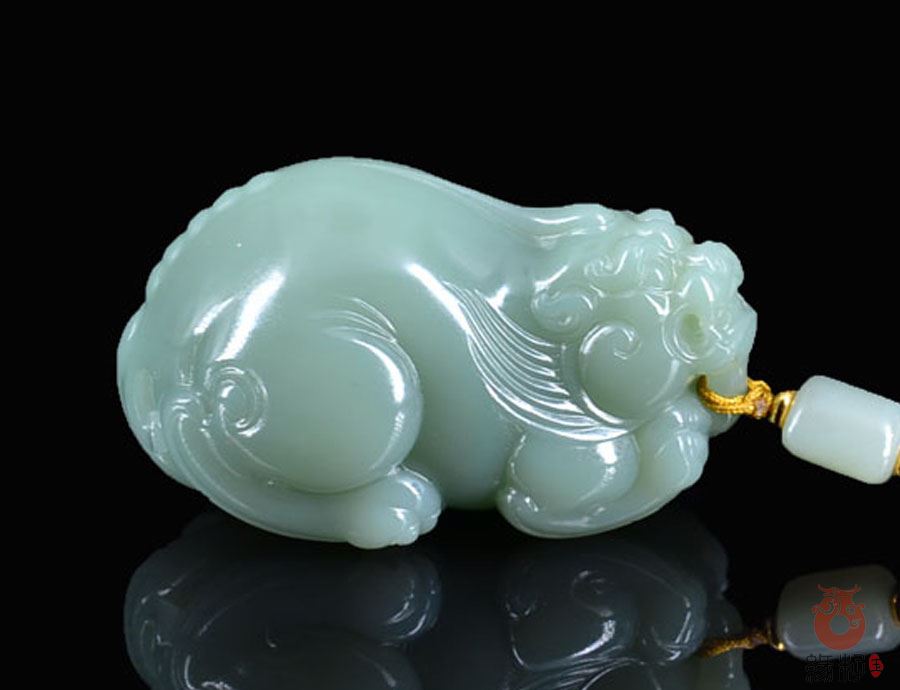 和田玉貔貅手把件粉青玉手把件