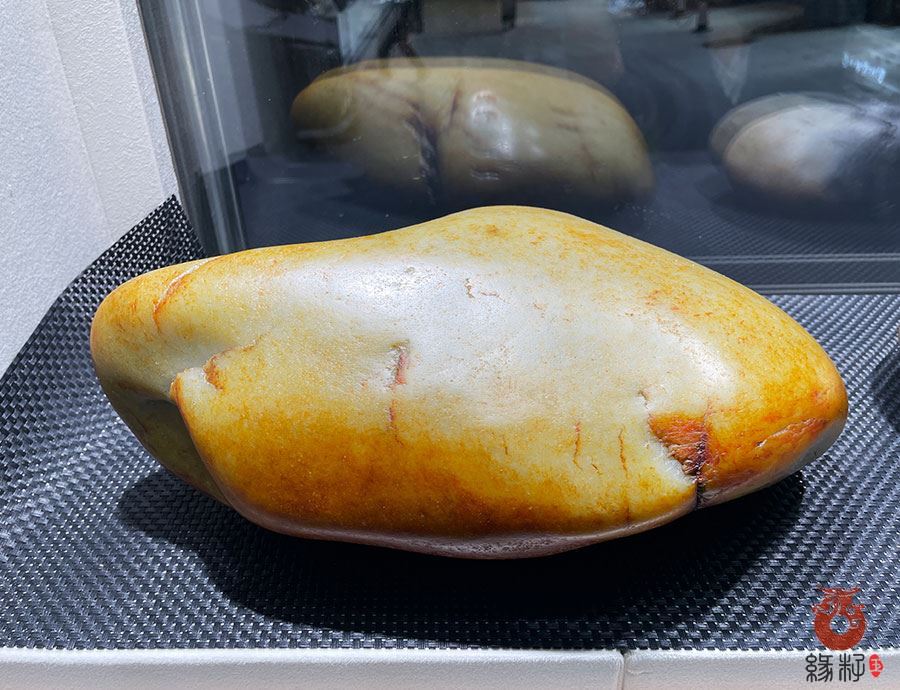 还有原生黄玉籽料,不像原生红玉那样难寻踪迹,它可是实打实的天然黄玉籽料,没入水冲刷前就是黄玉,天然的颜色均匀耐看,虽说玉质好坏各有说法,但稀缺性摆在那,也是藏界的香饽饽。