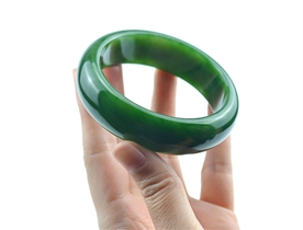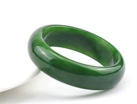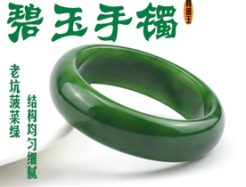 作品特色: 流行扁条设计,时尚潮流新款,宽窄适中,贴身舒适,高雅大方,油润光泽,靓丽美观;玉质温润细腻,油糯老熟,结构及色泽均匀且致密无杂质,属高端和田玉料/出自老坑,色泽碧绿洁净,高雅靓丽,稀有菠菜绿碧玉臻品;精美包装礼盒及手提袋。