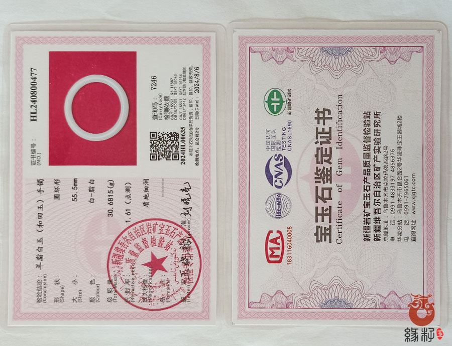 (附:新疆岩矿宝玉石产品质量监督检验站国家和田玉产品质量监督检验中心样例)