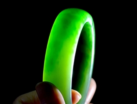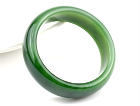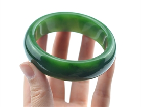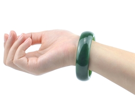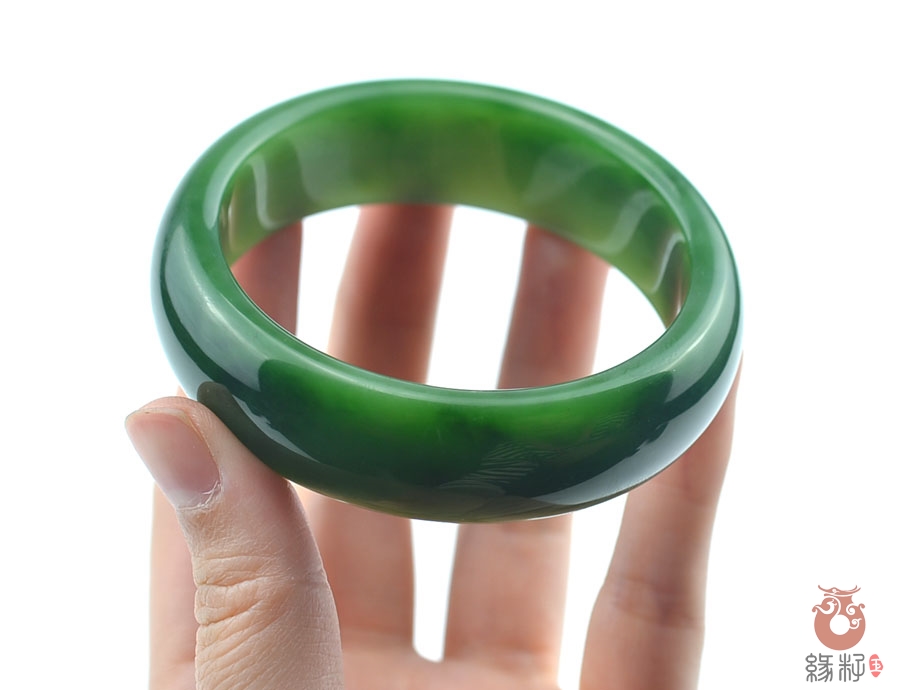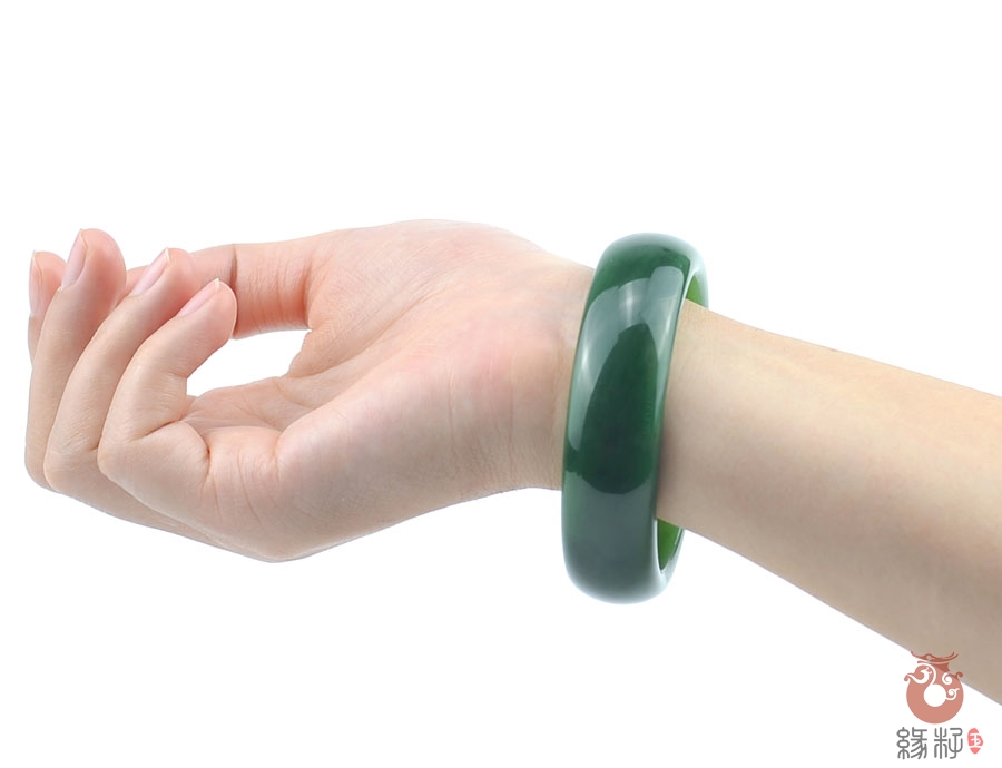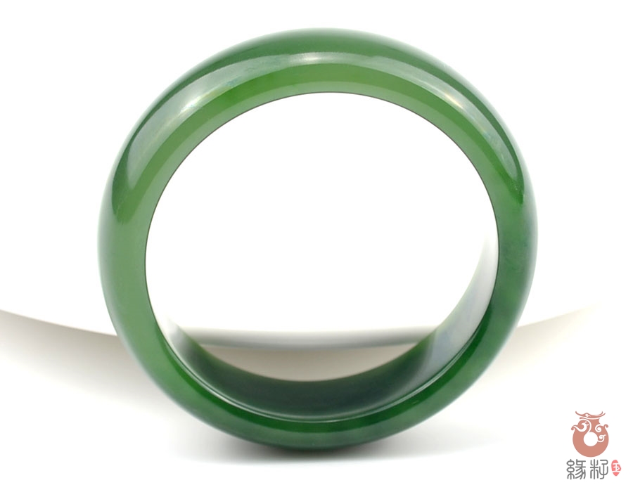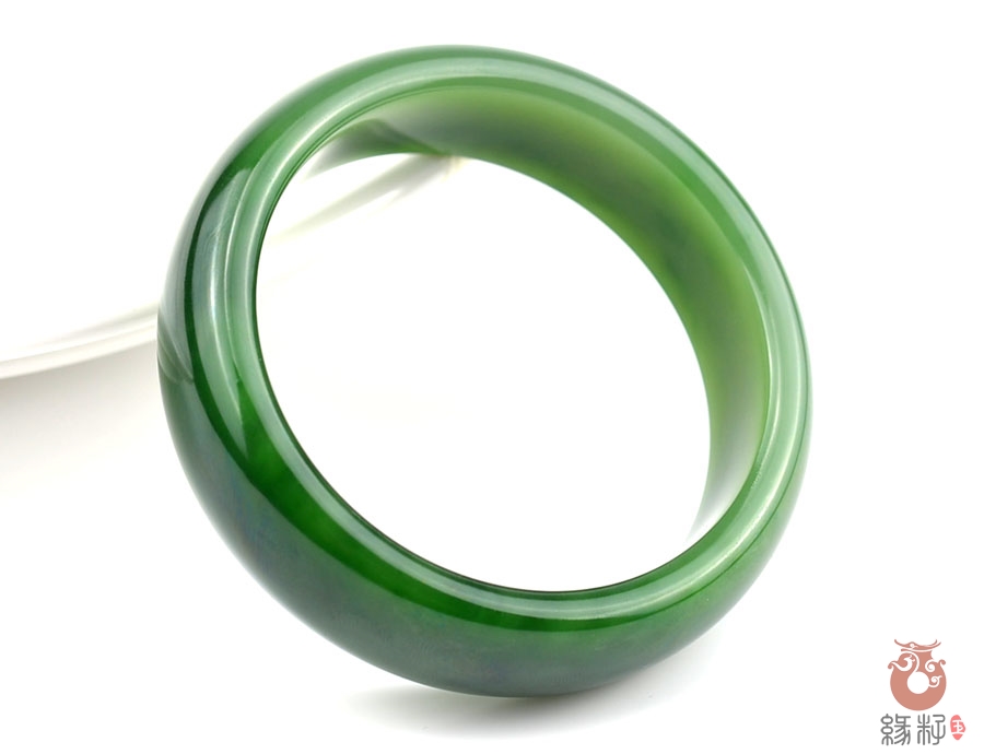 作品特色: 流行扁条设计,时尚潮流新款,宽窄适中,贴身舒适,高雅大方,油润光泽,靓丽美观;玉质温润细腻,油糯老熟,结构及色泽均匀且致密无杂质,属高端和田玉料/出自老坑,色泽碧绿洁净,高雅靓丽,稀有菠菜绿碧玉臻品;精美包装礼盒及手提袋。