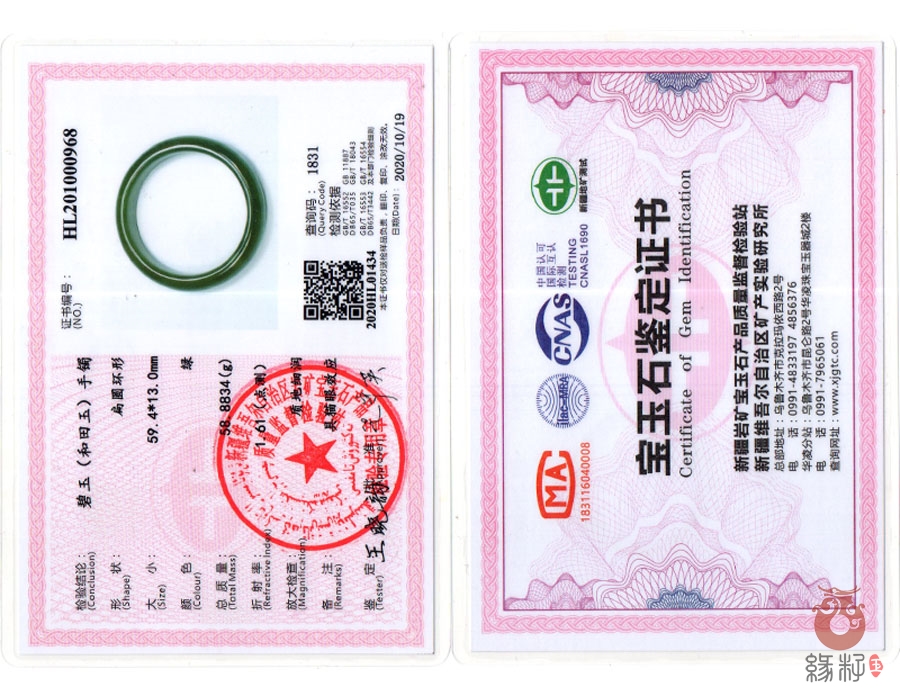 一、玉器鉴定证书上最醒目的CMA、CAL、CNAS/CNAL几个标志是什么含义      二、如何看和田玉宝玉石鉴定证书的检验结论?