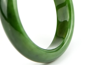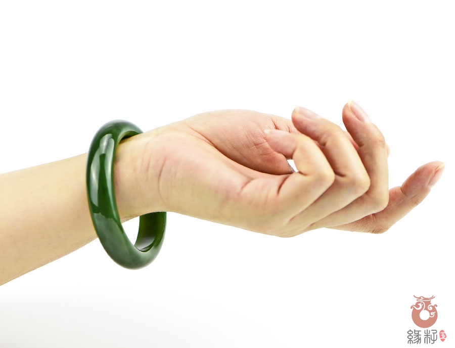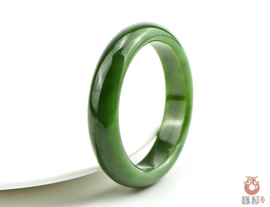 作品特色: 流行扁条设计,时尚潮流新款,宽窄适中,贴身舒适,高雅大方,油润光泽,靓丽美观;玉质温润细腻,油糯老熟,结构及色泽均匀且致密无杂质,属高端和田玉料/出自老坑,色泽碧绿洁净,高雅靓丽,稀有菠菜绿碧玉臻品;精美包装礼盒及手提袋。