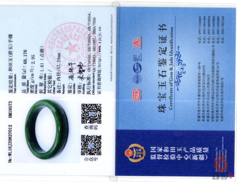 中国新疆和田玉网出售的商品均出具以下资质的国家权威质检部门质检证书: