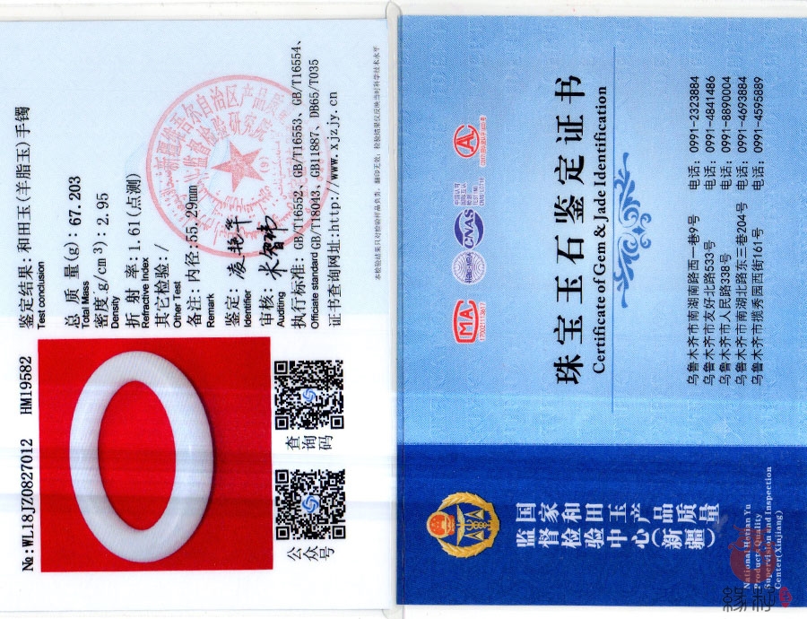 中国新疆和田玉网出售的商品均出具以下资质的国家权威质检部门质检证书: