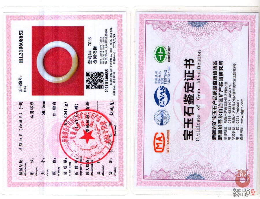 (附:新疆岩矿宝玉石产品质量监督检验站;国家和田玉产品质量监督检验中心样例)