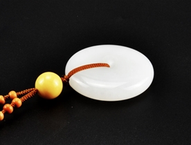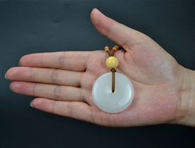 作品简述:缘籽和田玉平安扣挂件吊坠,天然优质和田玉羊脂玉,苏工大师设计雕刻,质地油润,光泽细腻,雕工精细,寓意平平安安 ,国检证书,七天无理由退货。