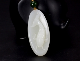 3. 功成名就、仕途腾达、鲤鱼跃龙门:传说鲤鱼逆流而上,跃过龙门即化为龙,玉雕中鲤鱼与龙门、浪花的组合象征科举中第、事业突破或社会地位的跃升,激励学子与进取者。鱼化龙形:部分玉鱼雕刻为龙头鱼身(鳌鱼),暗含“独占鳌头”之意,常见于文房摆件或官场赠礼。