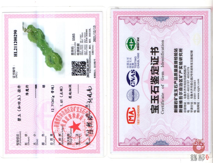 (附:新疆岩矿宝玉石产品质量监督检验站;国家和田玉产品质量监督检验中心样例)