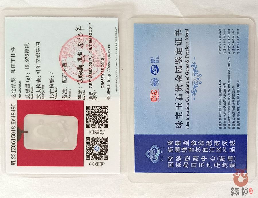 (附:新疆岩矿宝玉石产品质量监督检验站国家和田玉产品质量监督检验中心样例)