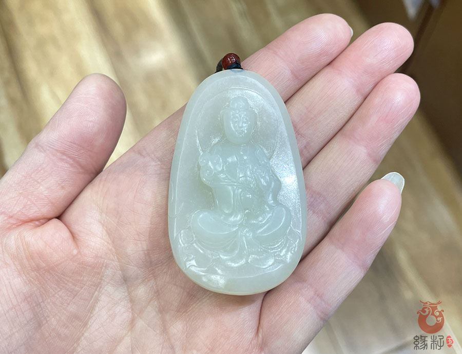 和田玉温润养人,观音本身具消病除障法力,共同强化祛病延寿的象征意义。
