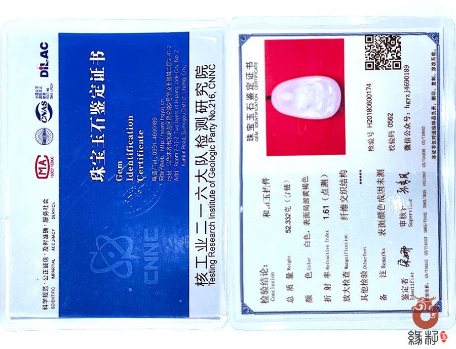 (附:新疆岩矿宝玉石产品质量监督检验站国家和田玉产品质量监督检验中心样例)