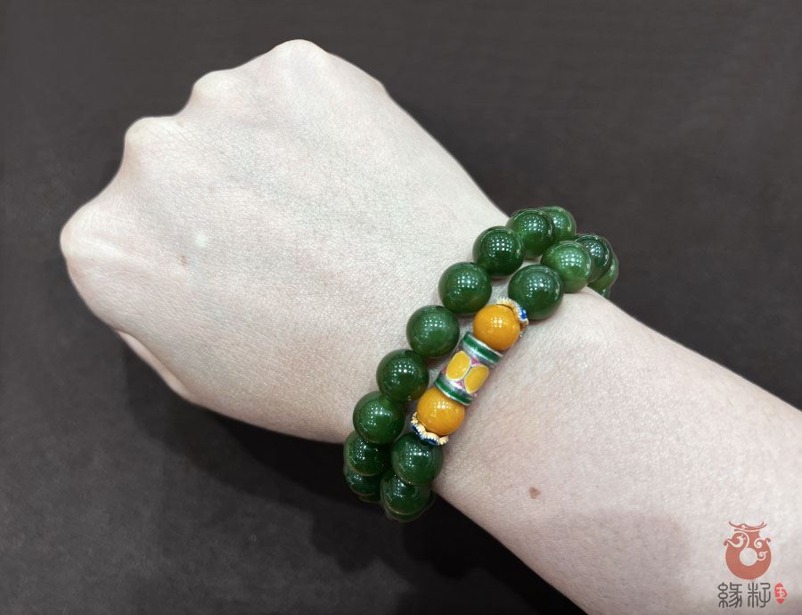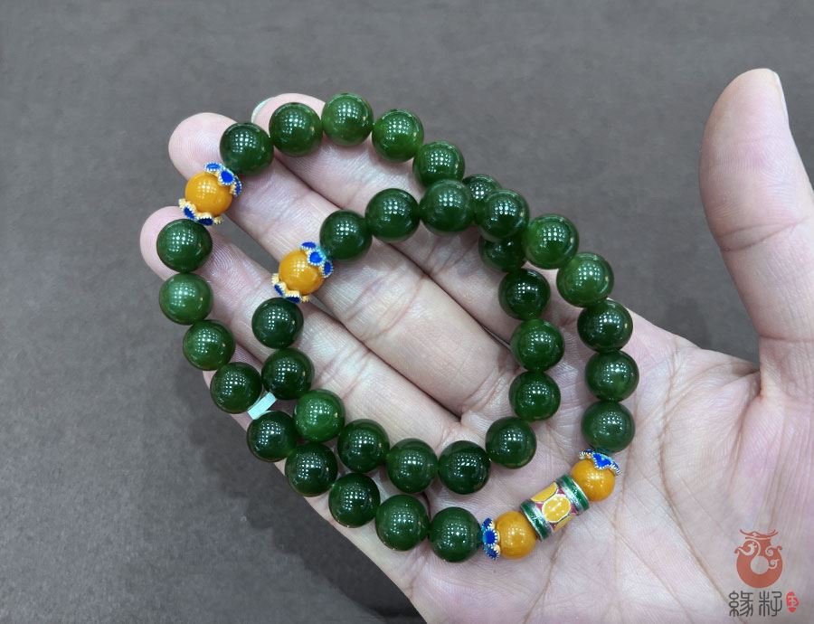 作品简述:缘籽和田玉9.5mm圆珠手串手链,天然优质和田玉碧玉,苏工大师设计雕刻,质地油润,光泽细腻,雕工精细,寓意幸福美满,国检证书,七天无理由退货。