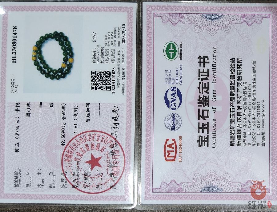 中国新疆和田玉网出售的商品均出具以下资质的国家权威质检部门质检证书: