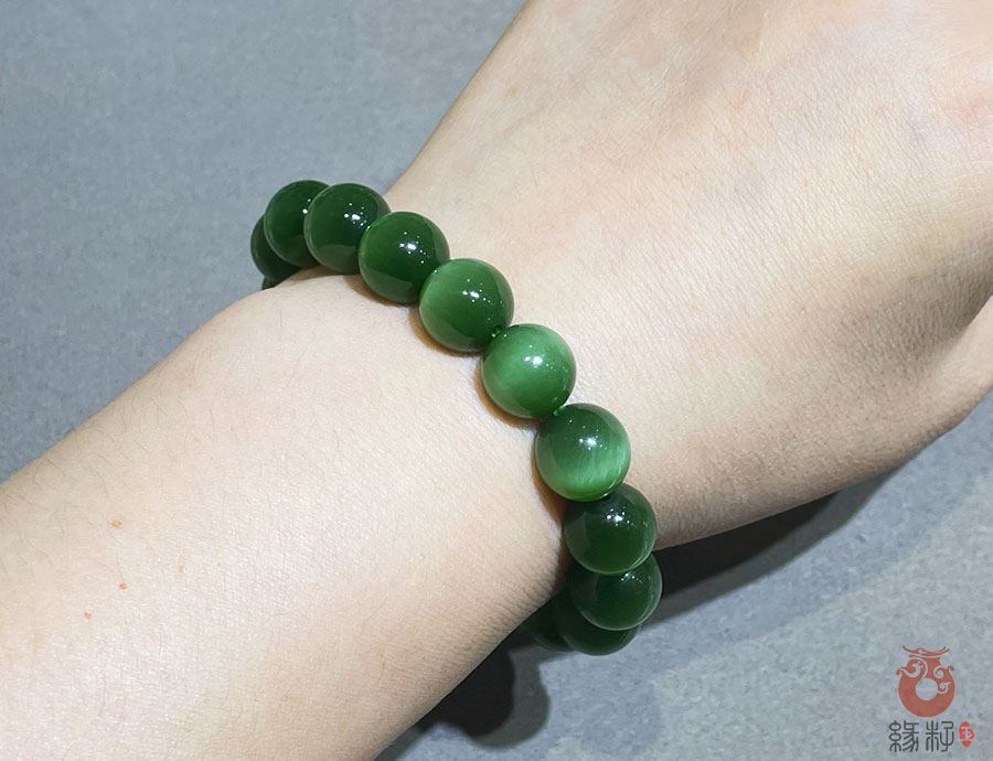 作品简述:和田玉手串碧玉猫眼11mm手链幸福美满