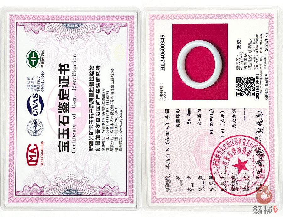 中国新疆和田玉网出售的商品均出具以下资质的国家权威质检部门质检证书: