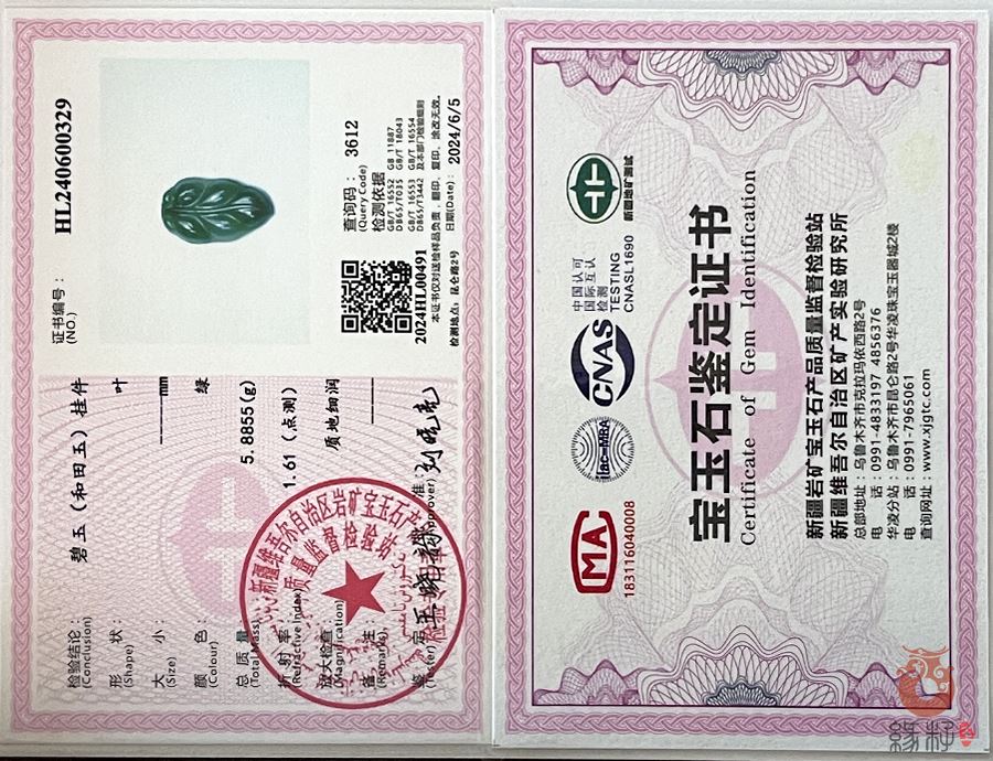 中国新疆和田玉网出售的商品均出具以下资质的国家权威质检部门质检证书: