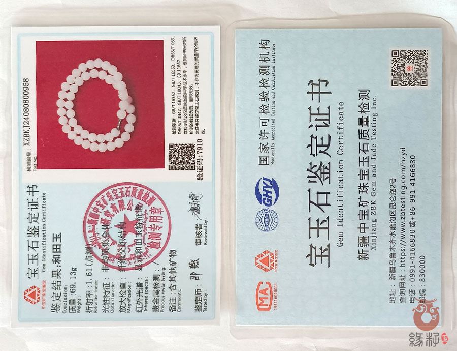 中国新疆和田玉网出售的商品均出具以下资质的国家权威质检部门质检证书: