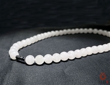 作品简述:和田玉项链选用纯天然上等和田玉白玉原料,颗颗精选,晶莹圆润饱满,和田玉白玉10mm珠项链质地纯净,油润光泽细腻,国检证书