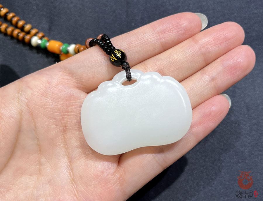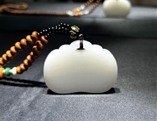 作品简述:缘籽和田玉如意长命锁挂件吊坠,天然优质和田玉羊脂白玉,苏工大师戴逸辰设计雕刻,质地油润,光泽细腻,雕工精细,寓意平安无事,国检证书,七天无理由退货。