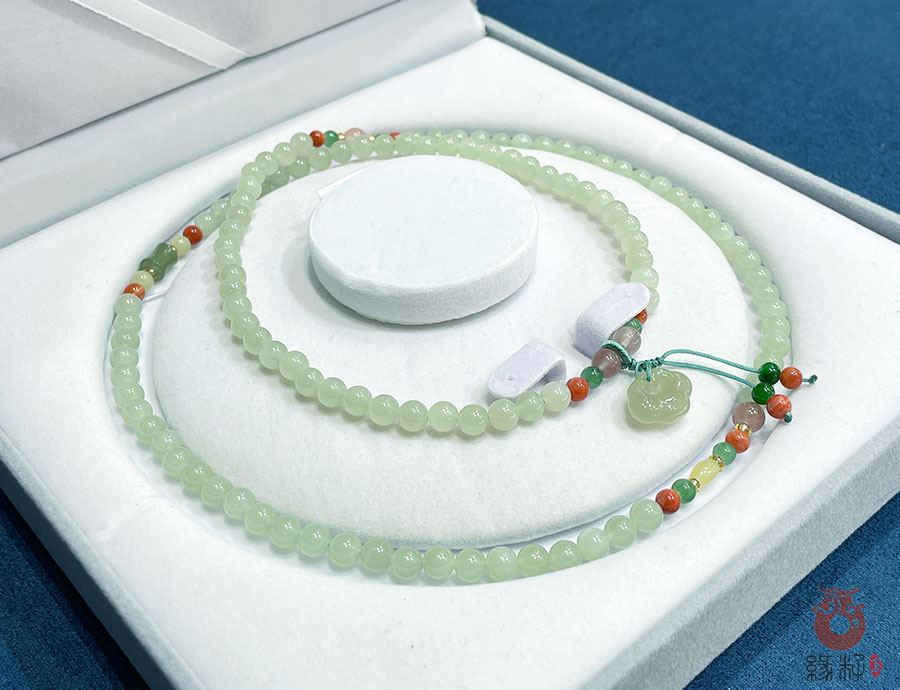 作品简述:和田玉项链和田玉青白玉6mm圆珠项链