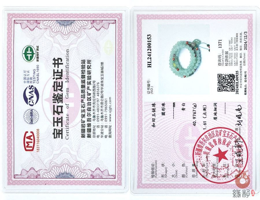中国新疆和田玉网出售的商品均出具以下资质的国家权威质检部门质检证书: