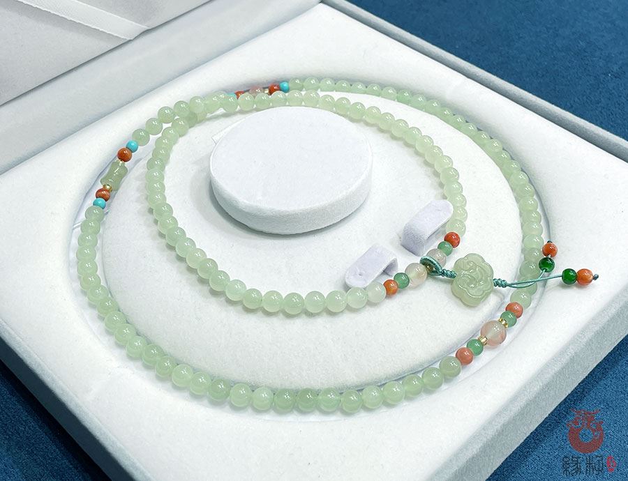 作品简述:和田玉项链和田玉青白玉6mm圆珠项链